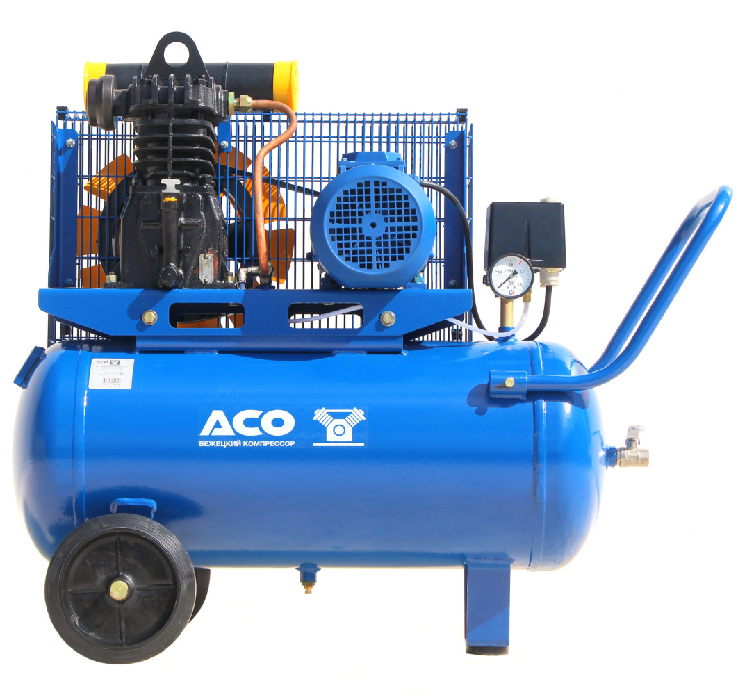 Передвижной поршневой компрессор К11 производства Бежецкого завода АСО. Данный компрессор оборудован ременным приводом от однофазного электродвигателя мощностью 2,2 кВт. В конструкции используется компрессорная головка С412М. Объем ресивера составляет 60 л. Номинальная производительность данного компрессора 360 л/мин, в то время как производительность по нагнетанию 275 л/мин. Компрессор обладает максимальным рабочим давление равным 8 атм. Габаритные размеры агрегата составляют 101 х 48 х 90 см, при массе 100 кг.