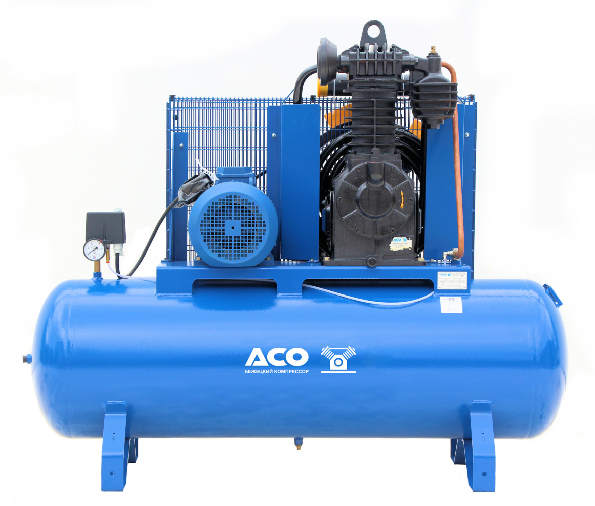Передвижной поршневой компрессор К22М производства Бежецкого завода АСО. Данный компрессор оборудован ременным приводом от однофазного электродвигателя мощностью 7,5 кВт. В конструкции используется компрессорная головка С415М.01. Объем ресивера составляет 230 л. Номинальная производительность данного компрессора 900 л/мин, в то время как производительность по нагнетанию 700 л/мин. Компрессор обладает максимальным рабочим давление равным 8 атм. Габаритные размеры агрегата составляют 160 х 65 х 135 см, при массе 275 кг.